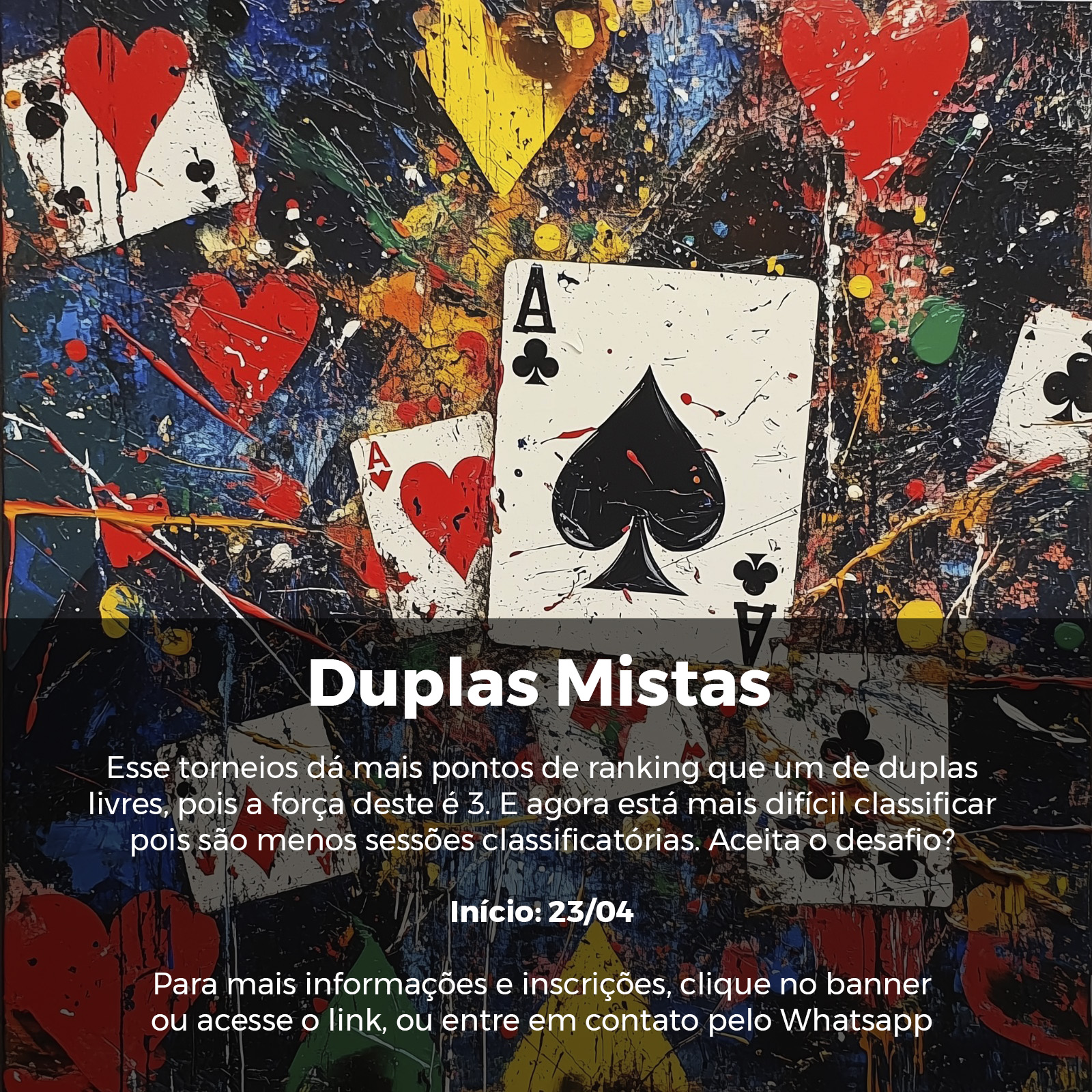 A inscrição para os torneios é de R$ 50,00 para associados e de R$ 80,00 para não associados.